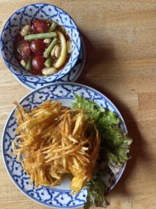 →大好評につき早くも復活!カラッと揚げた青パパイヤをニンニクの香りとタマリンドの甘みが効いたソースでどうぞ♪